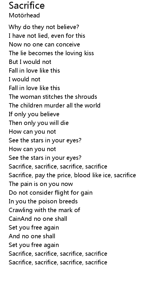 Sacrifice, pay the price, blood like ice, sacrifice |