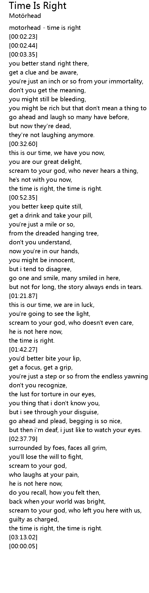 | [00:01.32] | motorhead - time is right |