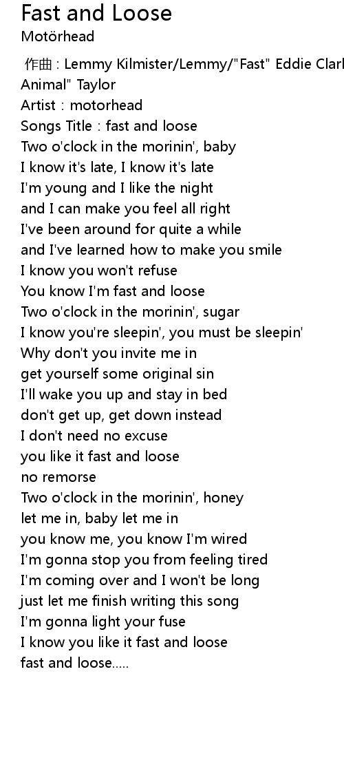 | [00:00.00] | zuo qu : Lemmy Kilmister Lemmy" Fast" Eddie Clarke Phil " Philthy Animal" Taylor |