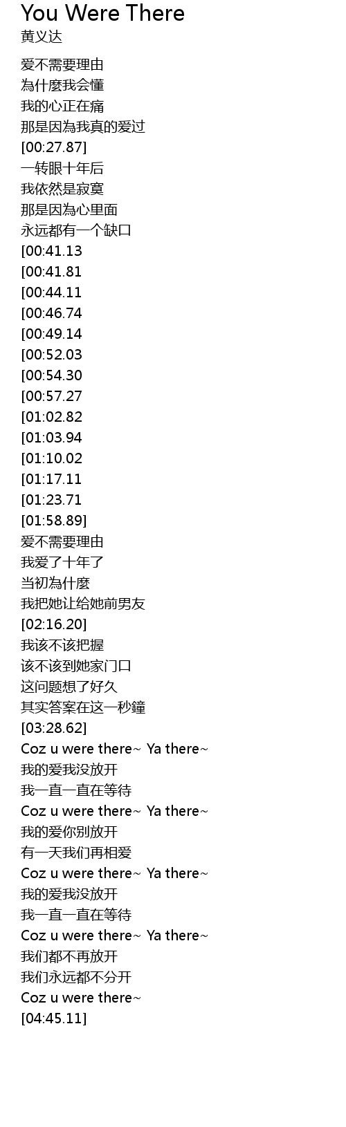 | [04:11.46] | Coz u were there Ya there |