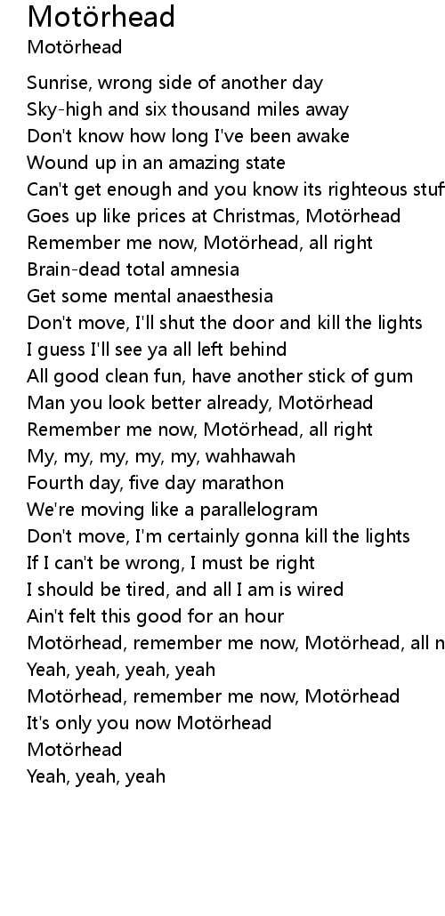 | Mot rhead, remember me now, Mot rhead, all night | |