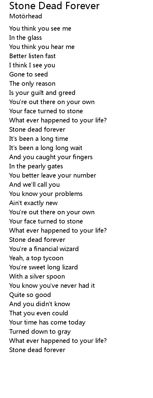 Stone dead forever |