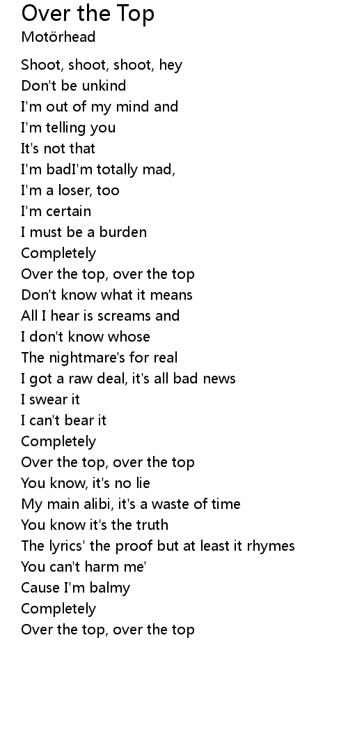 Over the top, over the top |