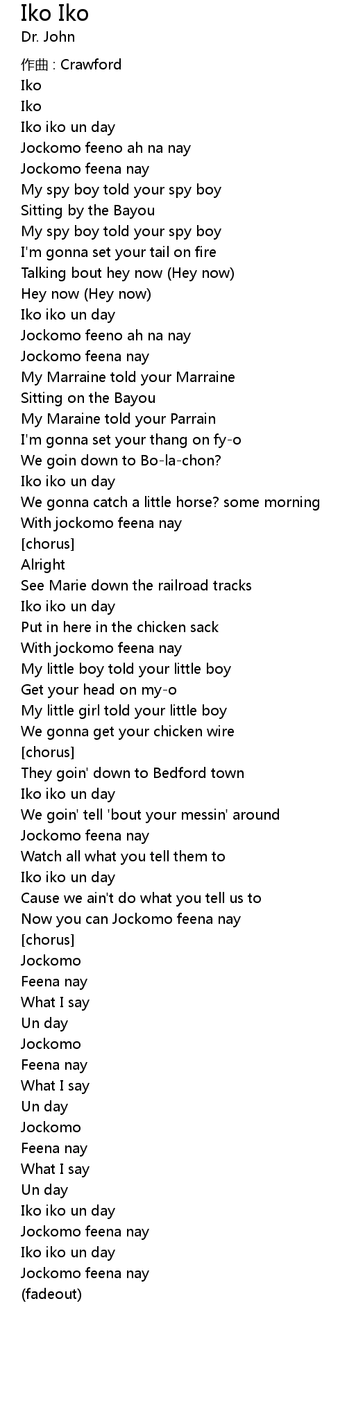 | 歌曲 | Iko Iko |
