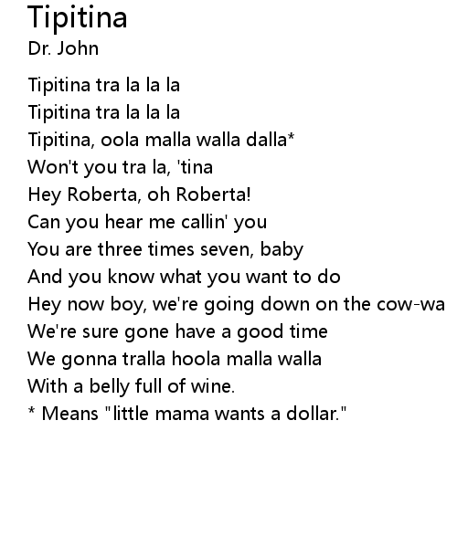 | Tipitina, oola malla walla dalla* | |