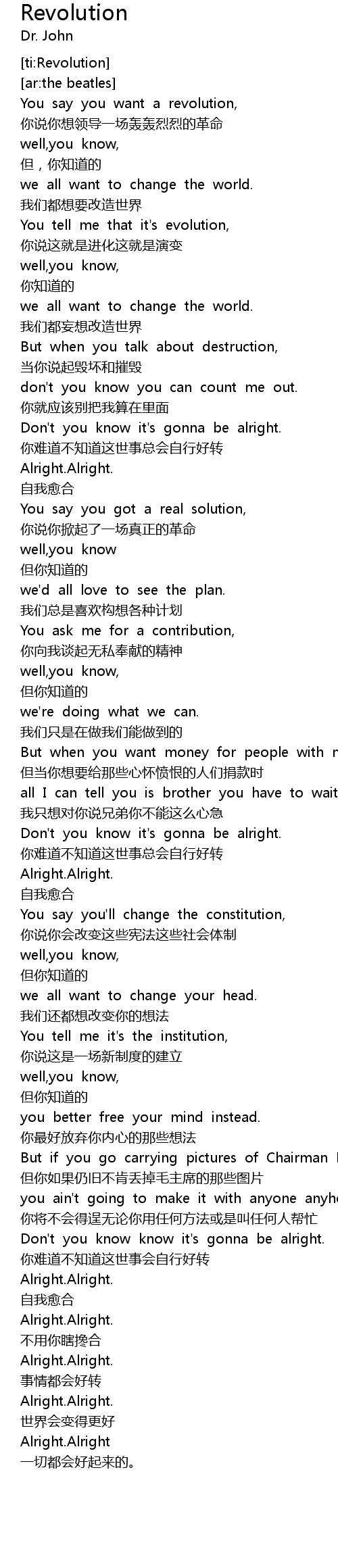 | [00:10.372] | 你说你想领导一场轰轰烈烈的革命 |