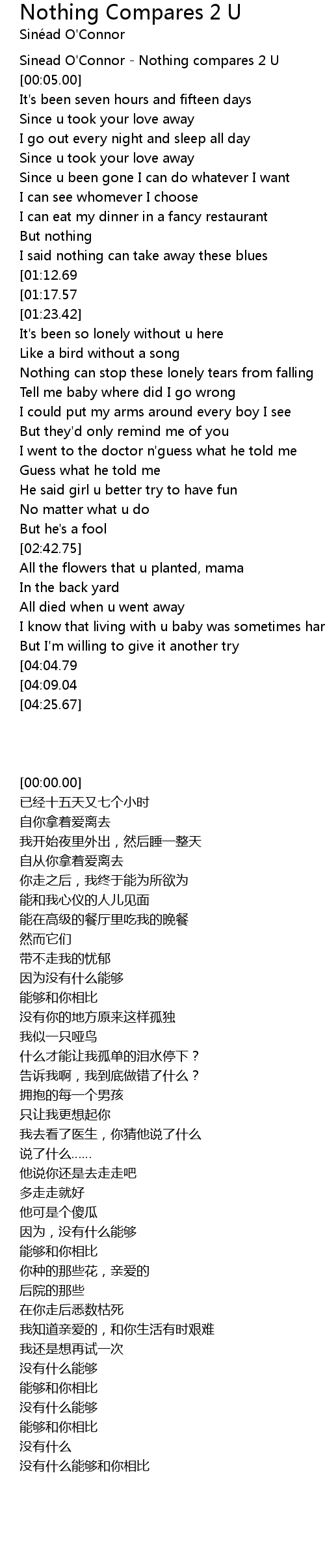 [00:00.00] Sinead O'Connor - Nothing compares 2 U