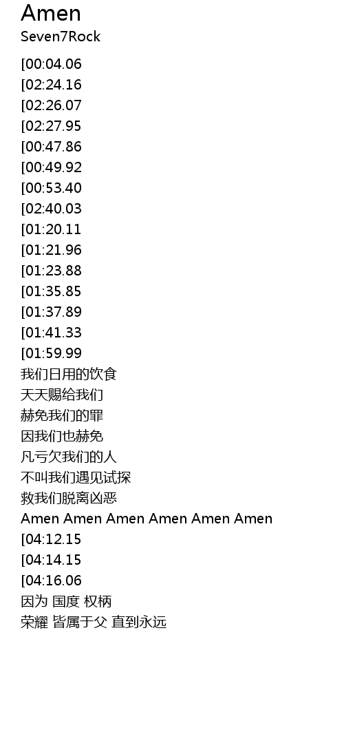 | [02:51.99][02:40.03][01:15.96][01:04.05] | Amen Amen Amen Amen Amen Amen |