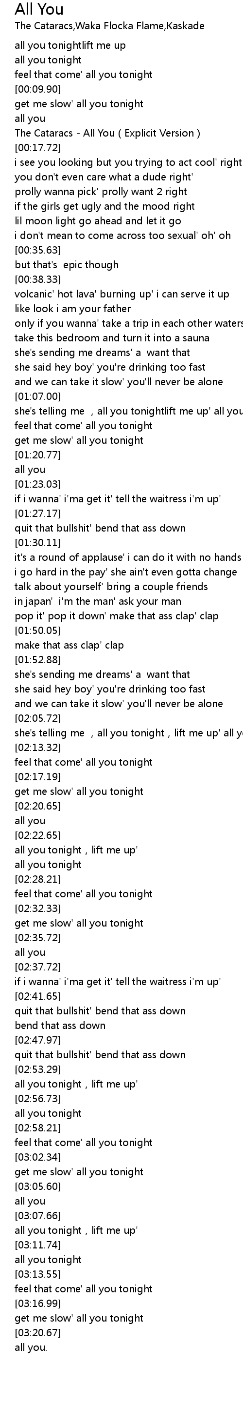 | [00:15.64] | The Cataracs All You Explicit Version |