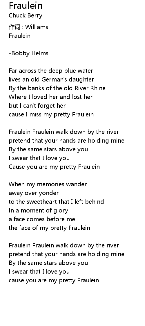 | cause I miss my pretty Fraulein | |