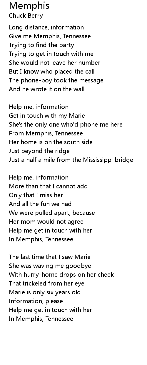 | Give me Memphis, Tennessee | |