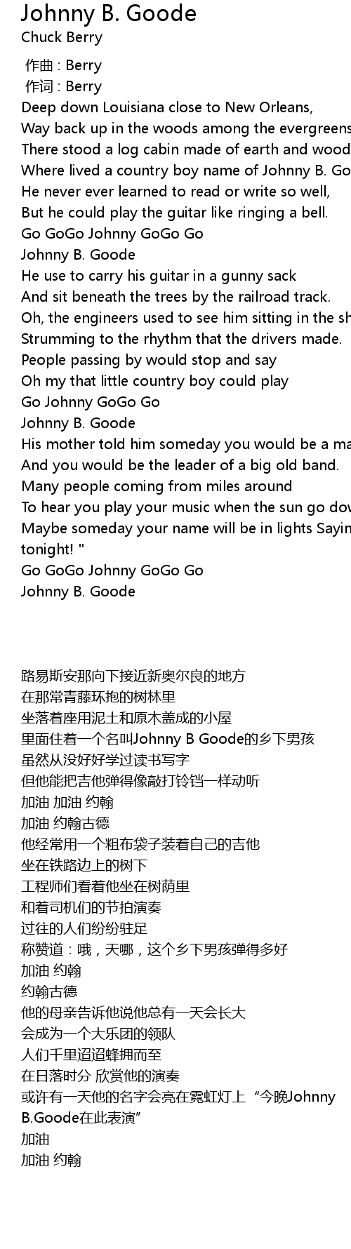 | [02:11.730] | Maybe someday your name will be in lights Saying Johnny B. Goode tonight! |