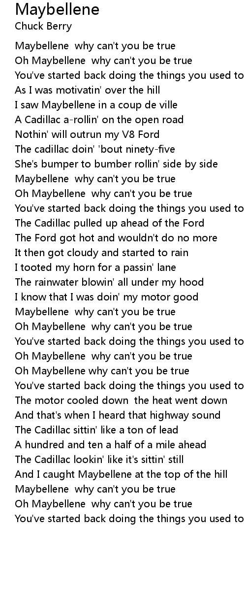 Oh Maybellene why can't you be true |