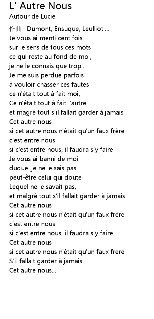| 歌曲 | L' Autre Nous |