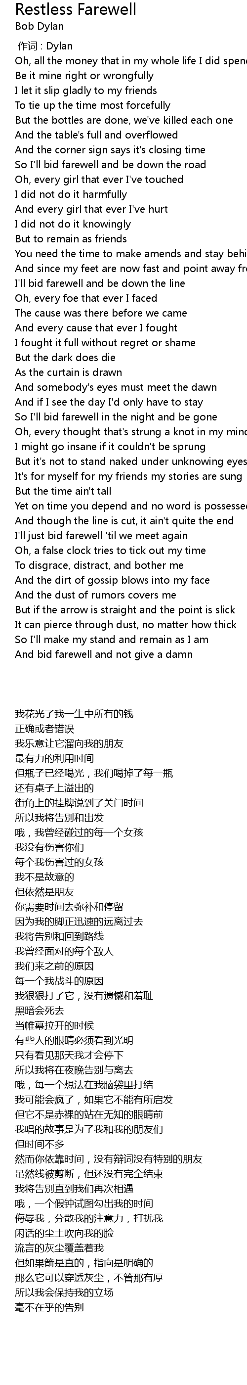 | 歌曲 | Restless Farewell |