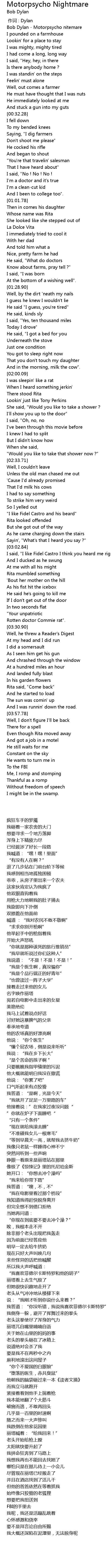 | [00:02.74] | Bob Dylan - Motorpsycho nitemare |