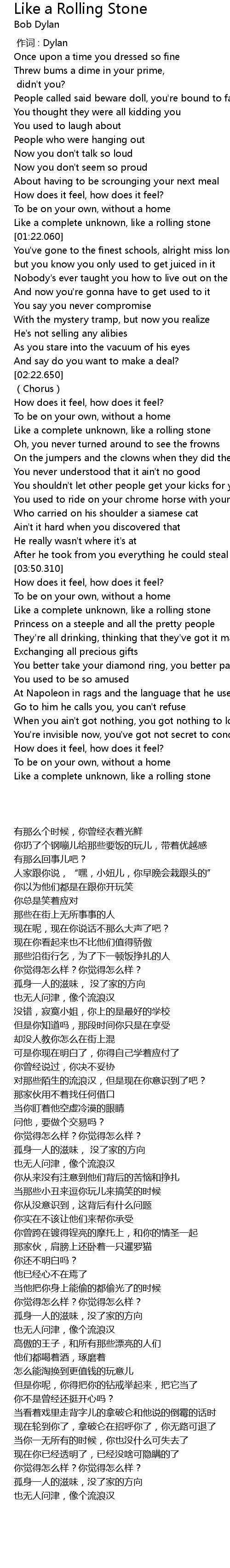 | [01:14.760] | Like a complete unknown, like a rolling stone |
