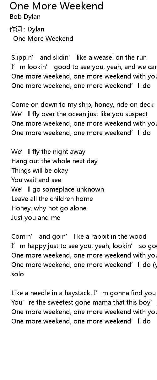 | One more weekend, one more weekend with you | |
