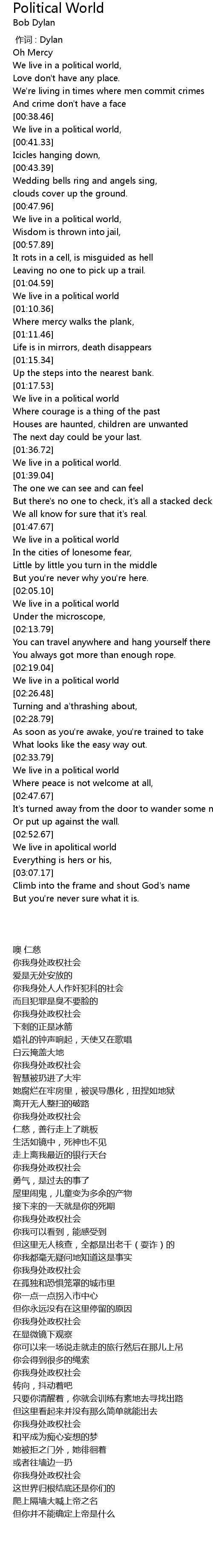 | [01:56.61] | We live in a political world |