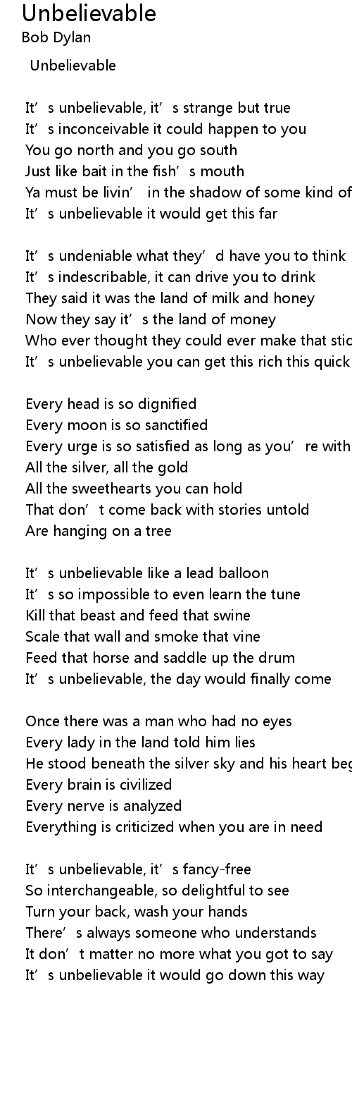 | It' s unbelievable, it' s strange but true | |