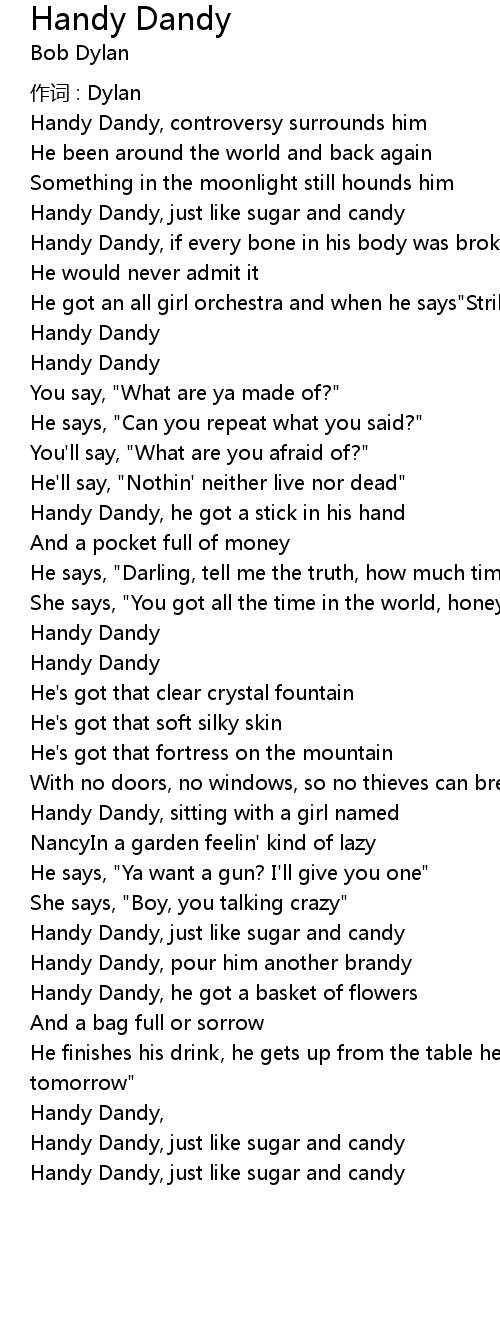| Handy Dandy, just like sugar and candy | |