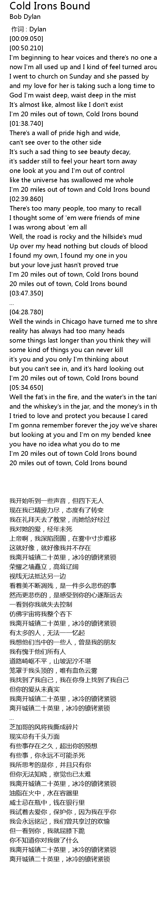 | [03:37.120] | 我离开城镇二十英里,冰冷的镣铐紧锁 |