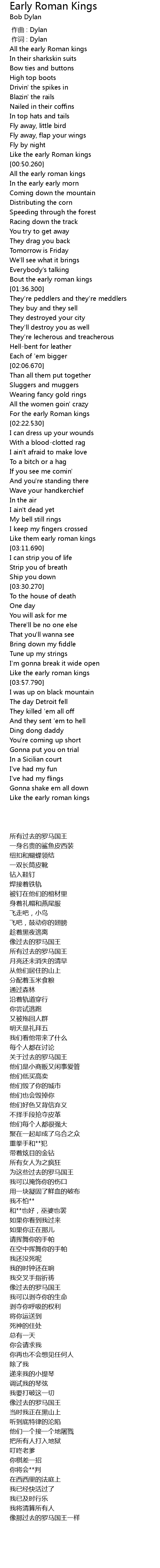 | [00:01.00] | zuo ci : Dylan |