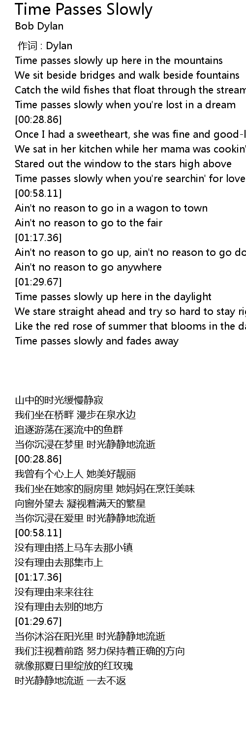 | [00:52.81] | Time passes slowly when you' re searchin' for love |