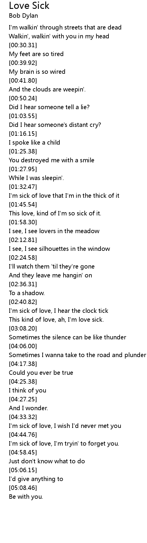| [01:38.91] | I'm sick of love that I'm in the thick of it |