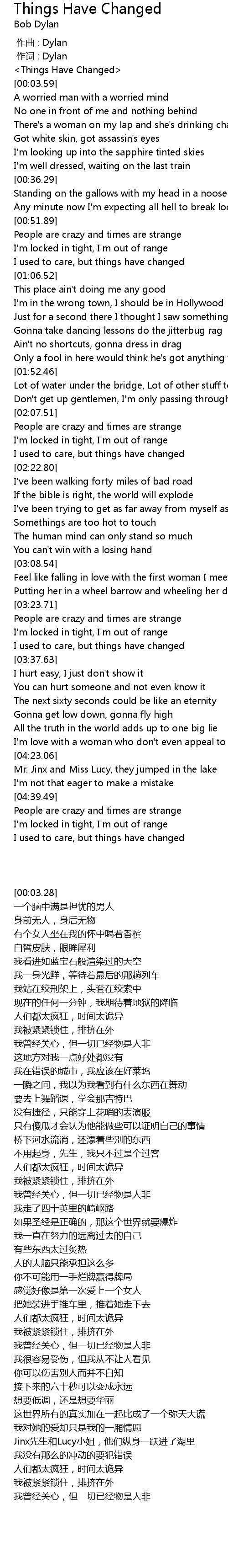 | [00:03.28] | Things Have Changed |