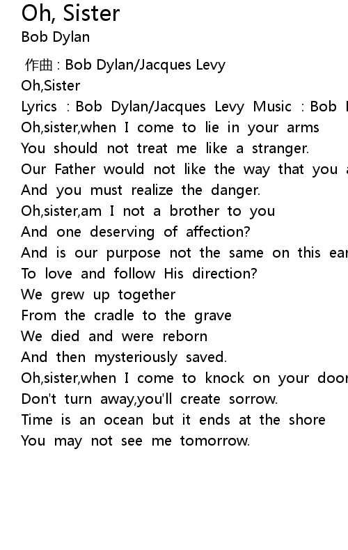 | [00:02.39] | Lyrics : Bob Dylan Jacques Levy Music : Bob Dylan |