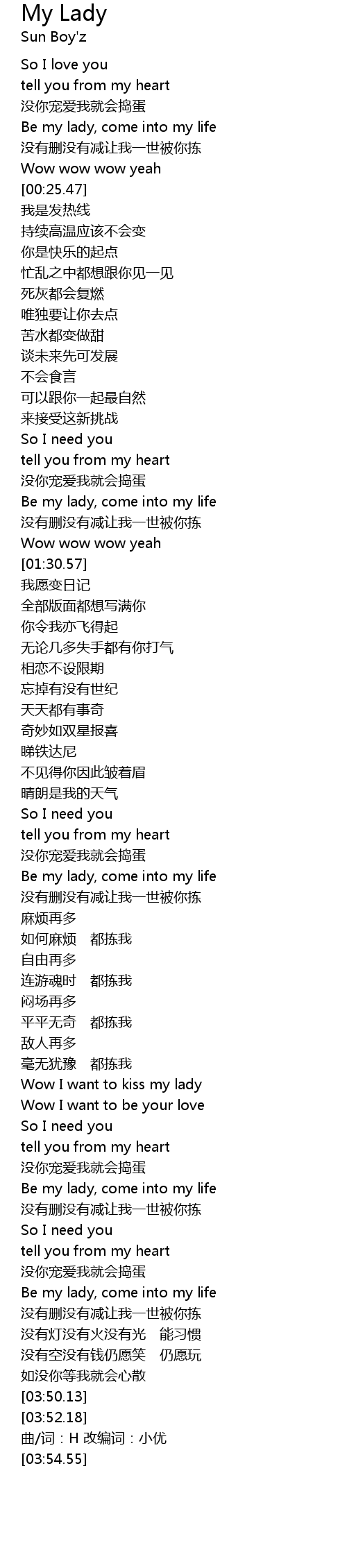 | [03:30.53] | Be my lady, come into my life |