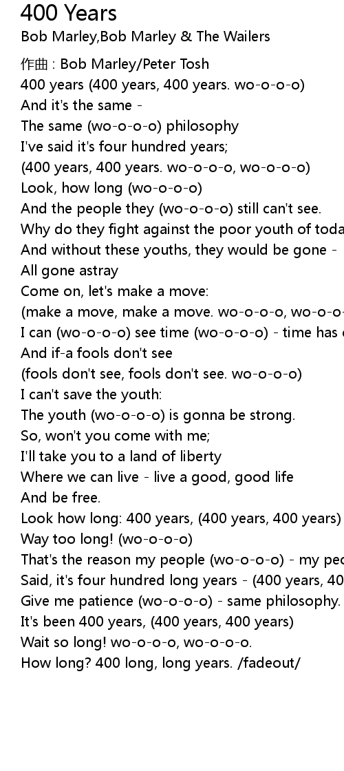 | (400 years, 400 years. wo-o-o-o, wo-o-o-o) | |