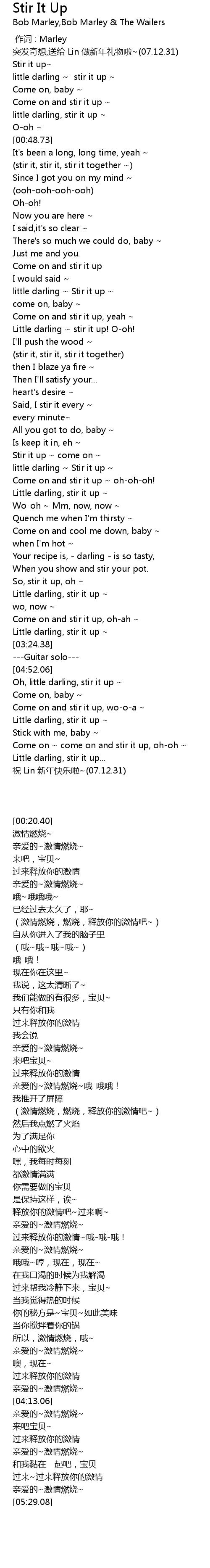 | [01:20.57] | little darling ~ Stir it up ~ |