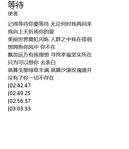 | [00:49.55] | 记得等待你要等待 无论何时我再回来 |