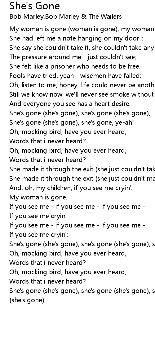 | My woman is gone (woman is gone), my woman is gone (woman is gone). | |