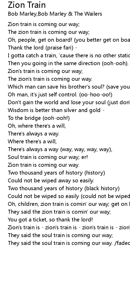 Zion's train is - zion's train is - zion's train is - zion's train -
