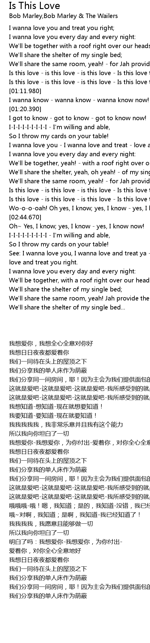 | [02:10.110] | We'll share the same room, yeah! - for Jah provide the bread. |