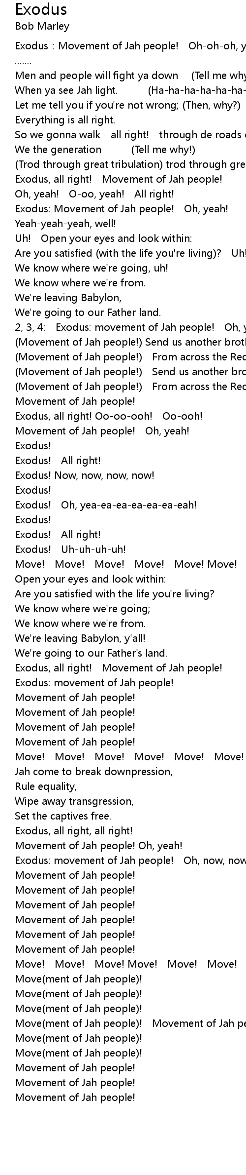 | Exodus:Movement of Jah people! Oh-oh-oh, yea-eah! | |