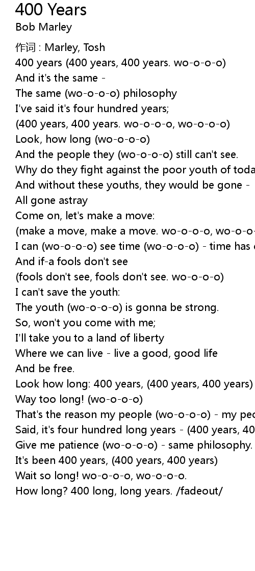 | Said, it' s four hundred long years 400 years, 400 years. woooo | |
