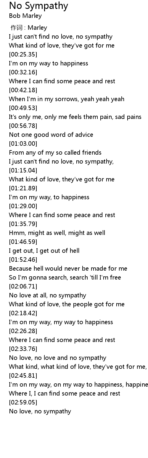 | [00:12.94] | I just can' t find no love, no sympathy |