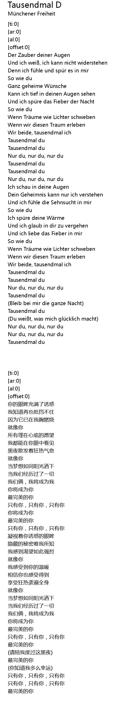 | [00:59.10] | Tausendmal du |