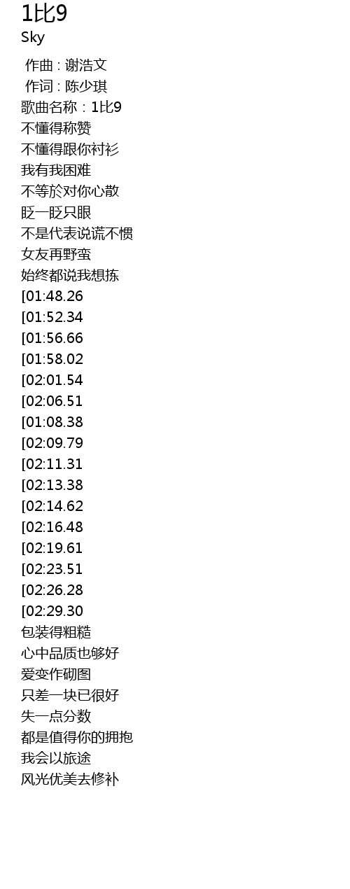 | [00:56.36][02:06.51][02:32.04] | 若是我九分好 |