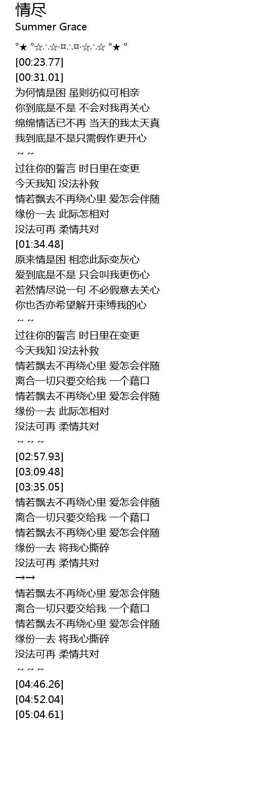| [04:26.02] | 情若飘去不再绕心里 爱怎会伴随 |