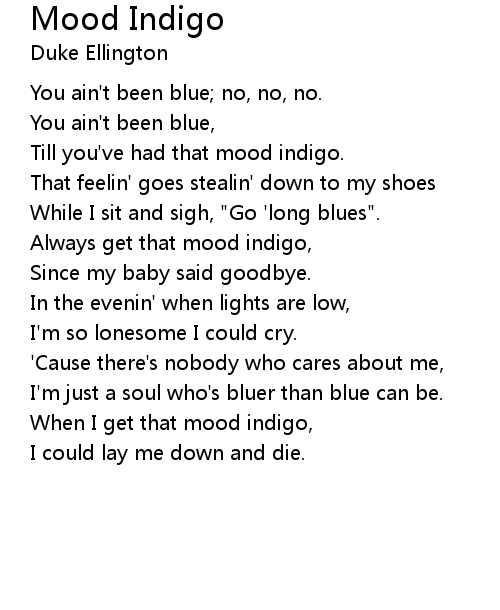 | Till you've had that mood indigo. | |