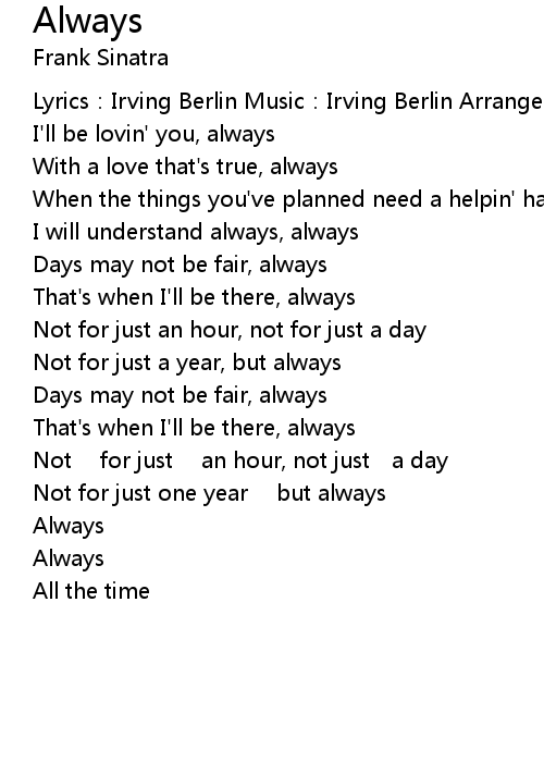 | I'll be lovin' you, always | |