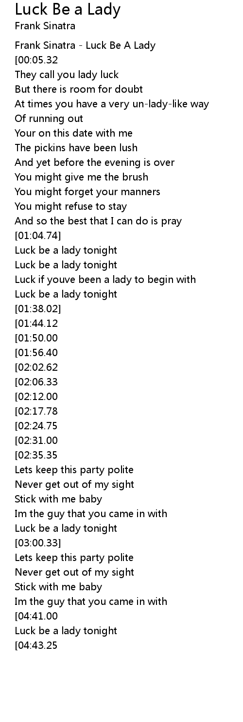 | [00:01.38] | Frank Sinatra - Luck Be A Lady |