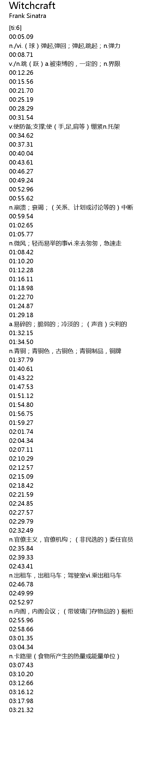| [02:59.254]02:58.66] | calcium n.钙(化学符号Ca) |
