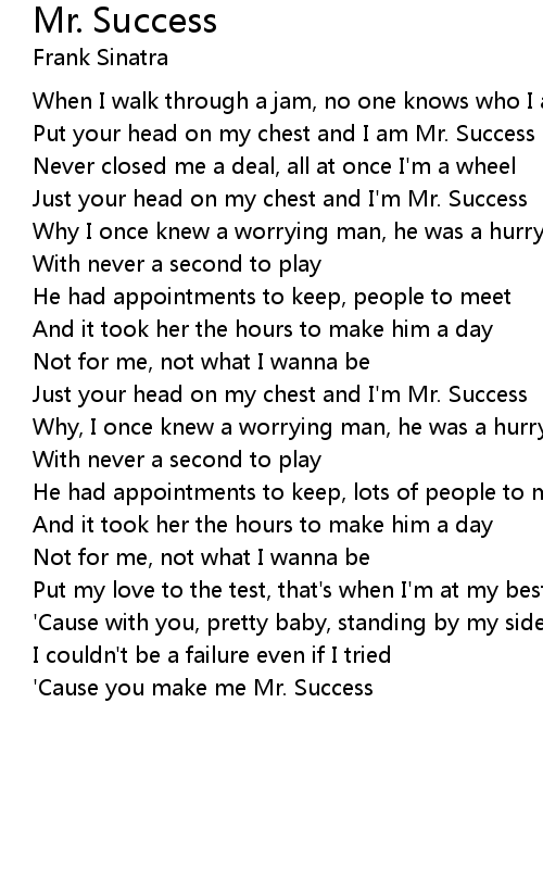 Just your head on my chest and I'm Mr. Success |