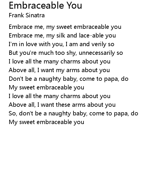 | Embrace me, my sweet embraceable you | |